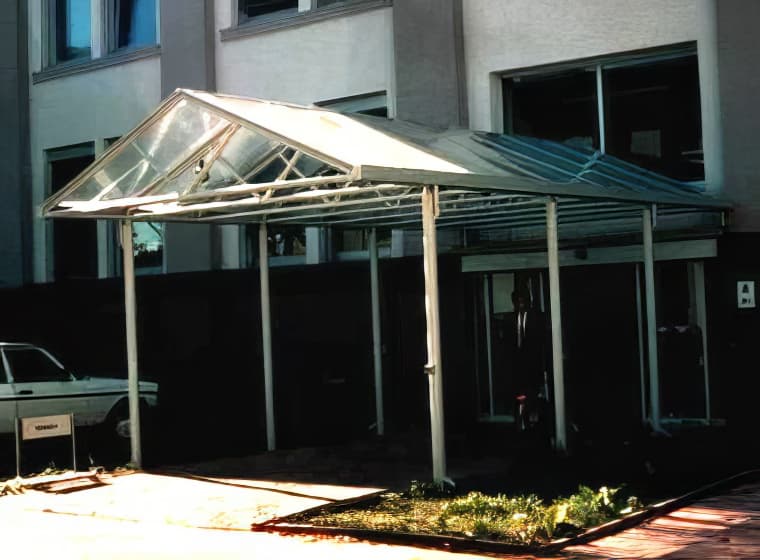 Objekt: Bürogebäude - Eingangsüberdachung aus Rundstahl, Eindeckung Plexiglas Stegdoppelplatten